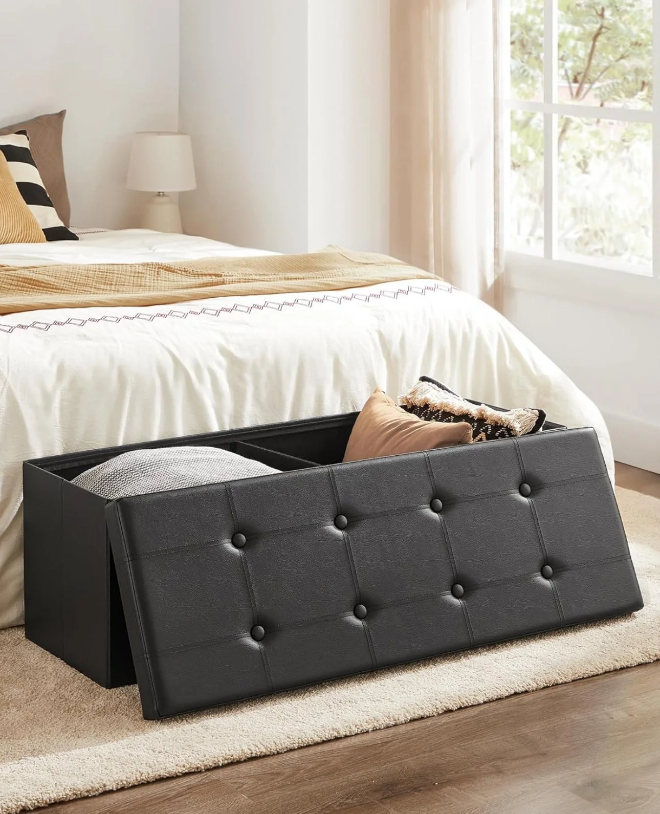 Imagine a piece of furniture that’s a triple threat: storage, seating, & style all in one. Need a bed end bench? Done. This sturdy padded bench holds up to 660 lbs! Want to declutter the room? Flip open the top, & you’ve got instant storage for everything from board games to blankets. Best of all, when you need the space back, just fold it up & tuck it away.