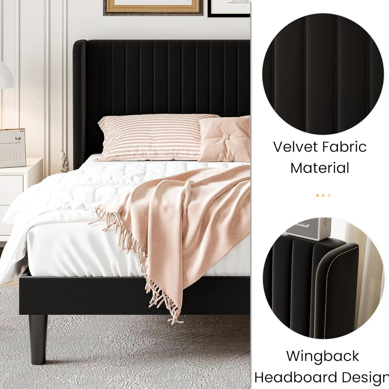 Velvet’s tactile richness turns an ordinary bedroom into a sanctuary, so every night feels like a stay in a five-star hotel. the frame’s sturdy queen size promises plenty of space for you to sprawl, stretch, & live your best, sleep-loving life. The bed frame has a modern wingback headboard, beautifully upholstered in soft velvet. Function meets indulgence—because your beauty rest deserves a throne!